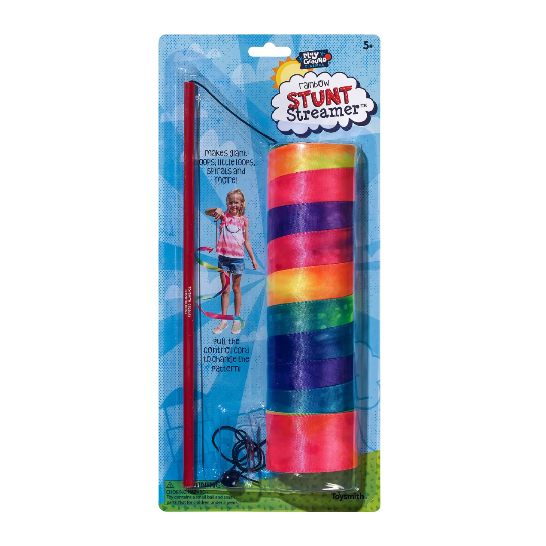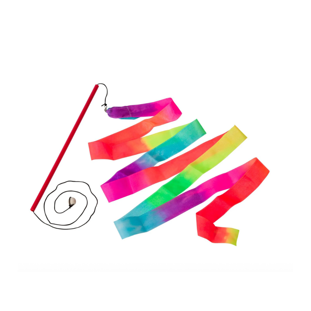 Fill your world with this classic toy. With an easy to hold baton handle, simply pull the control cord to make the ribbon change shape. Designed for outdoor play only. Bright neon-colors create a 6.5-foot streaming rainbow.