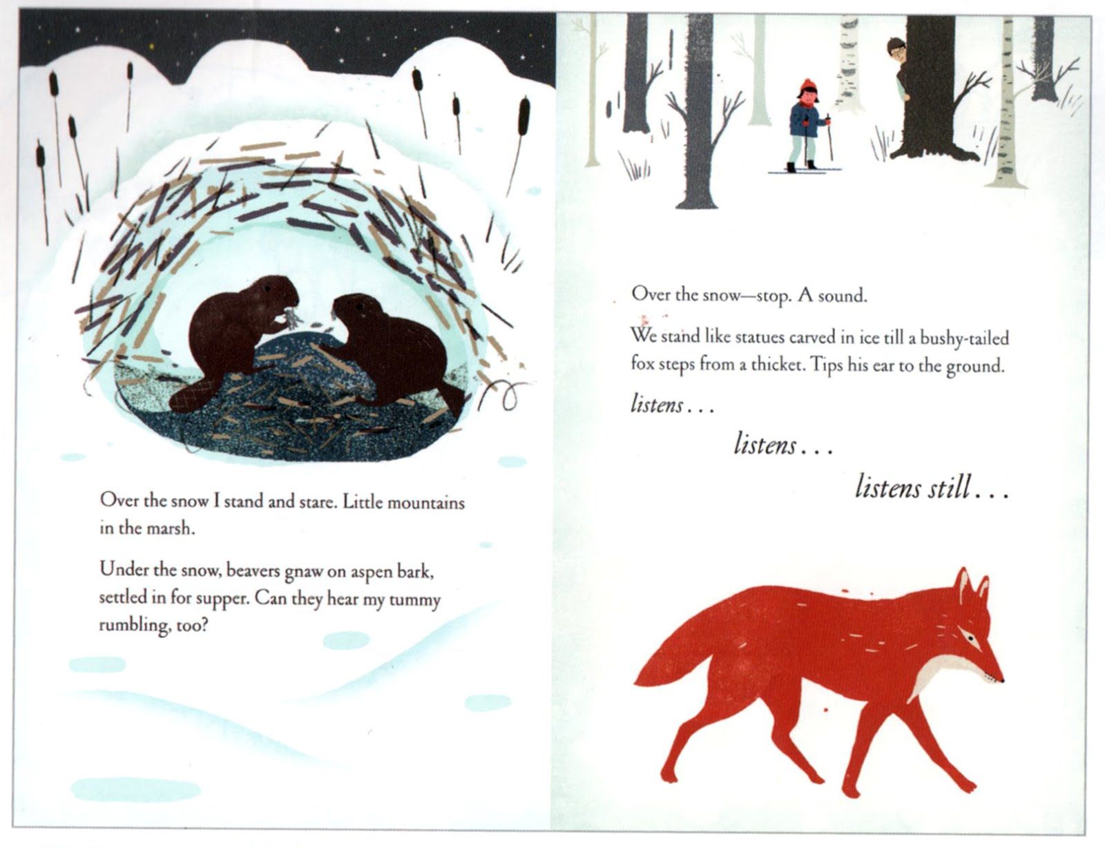 But under the snow is a secret world of squirrels and snowshoe hares, bears and bullfrogs, and many other animals who live through the winter, safe and warm.
