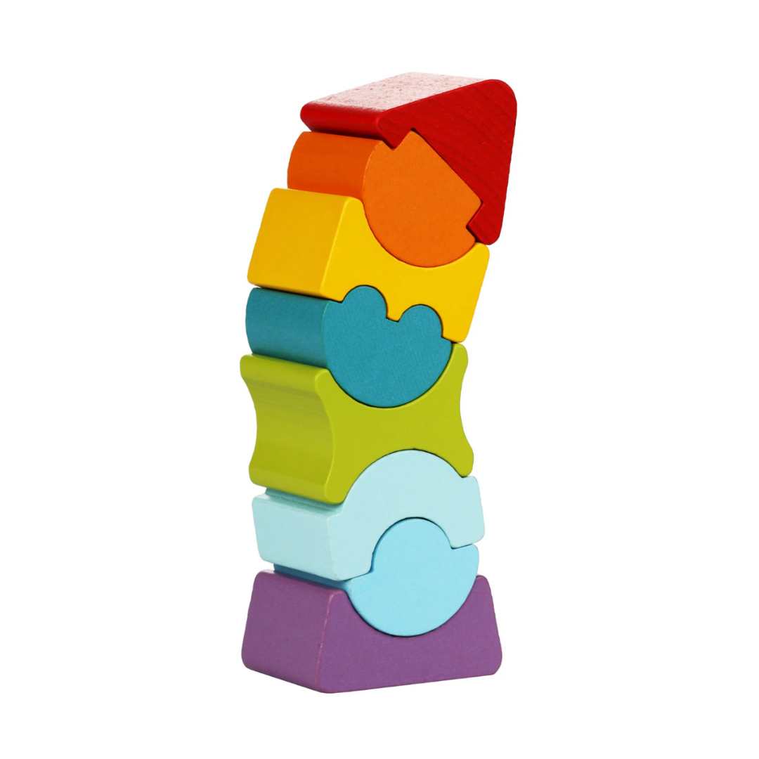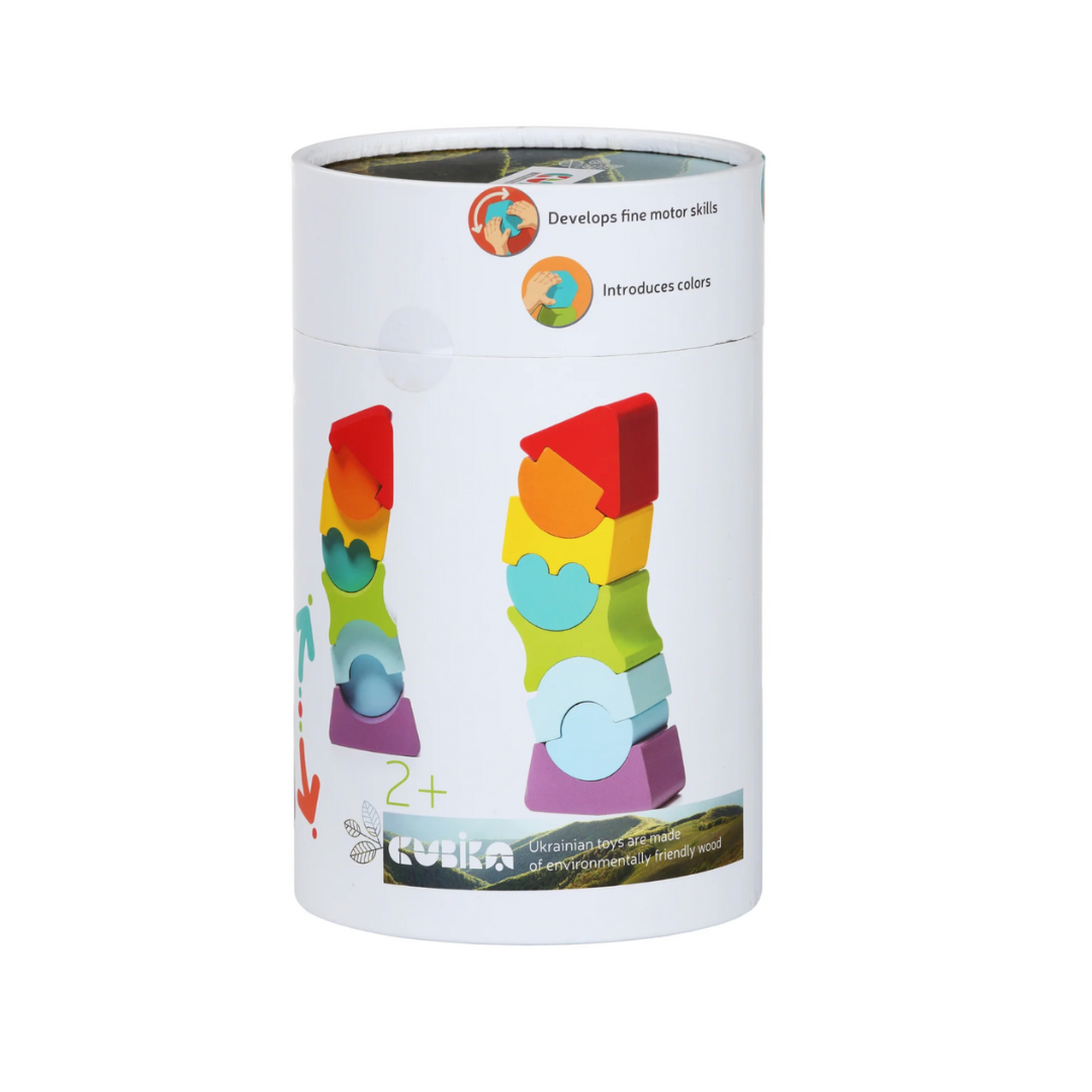 Stack and match with this 8-piece stacking set. Made from 100% organic Carpathian wood and finished with safe German water-based paints, it’s a sustainable toy that combines fun and skill-building.